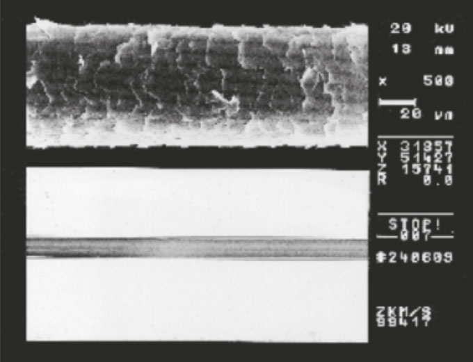 Comparison of 0.010 mm wire with human hair