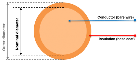 Due to the litz wire’s natural flexibility, bending radius, and winding tension dependent dimensional stability, the nominal outer diameter is approximated by an average value in combination with a defined measuring method.