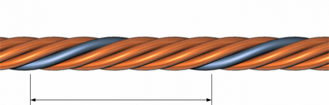 The length of lay describes the distance which a single wire needs for one complete rotation around the litz wire circumference (360 degrees).