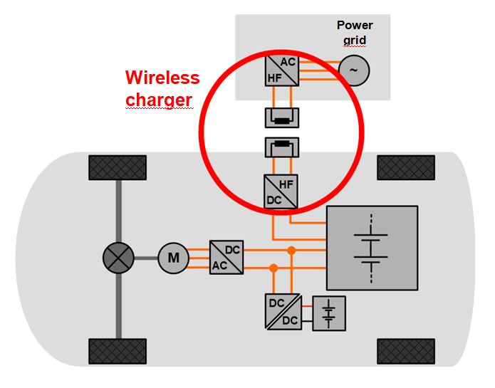 La trasmissione wireless della potenza viene eseguita mediante induzione reciproca di campi magnetici tra un trasmettitore e una bobina del ricevitore. Nella bobina del trasmettitore una corrente alternata crea un campo magnetico variabile nel tempo, che viene irradiato in tutte le direzioni. La massima efficienza di trasferimento di potenza in questo sistema si ottiene quando una bobina del ricevitore, con dimensioni identiche alla bobina del trasmettitore, viene posizionata precisamente sulla parte superiore e a pochi millimetri dalla bobina del trasmettitore.
