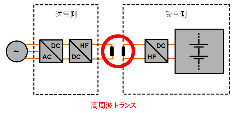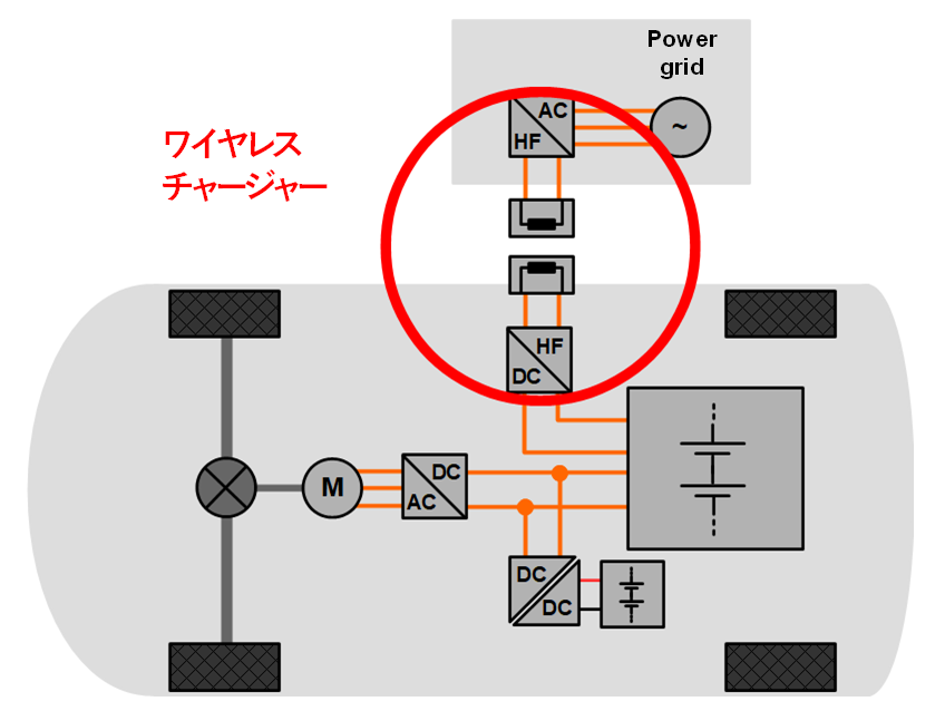 電力のワイヤレス伝送は送電側及び受電側コイルの共通誘導磁界で伝達される。送電側コイルでは交流が全方向に磁束変化を発生させる。一番効率よく電力が伝達させるには、送電側コイルと同じ径の受電側コイルが送電側コイルの真上で数ミリの距離に位置することです。