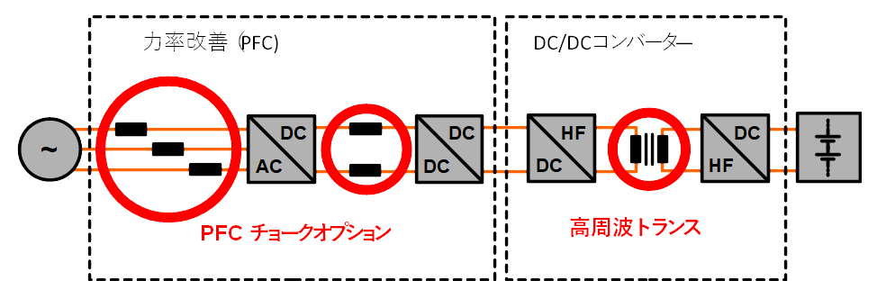 技術的及びリッツ線製品の詳細情報は、スイッチング電源 産業用途(2.1項)を参照。