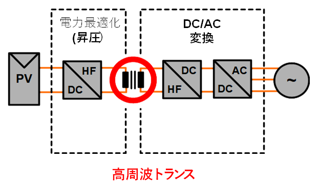 ガルバニック絶縁無しのインバータは直流と交流側が電気的に接続され高効率の利点はあるが、アースに対する交流電位の寿命が限定される。