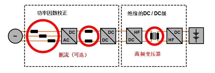 使用普通利兹线并带有电磁兼容屏蔽的高频变压器