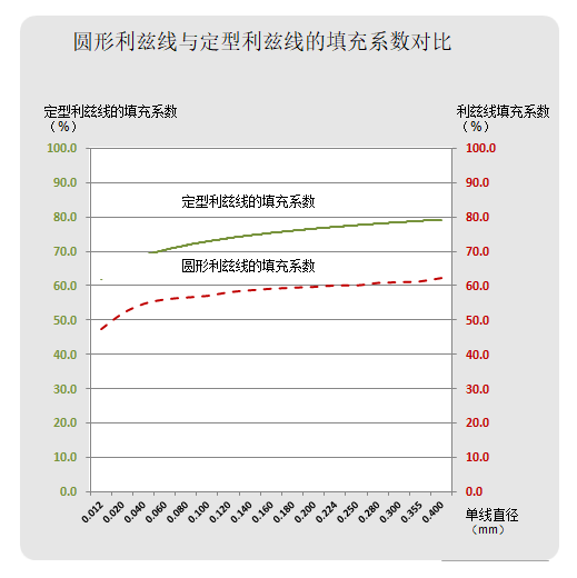 圆形利兹线和定型利兹线的线圈填充系数对比