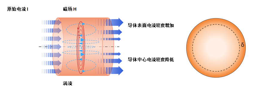 T随着频率的增加,电流越来越沿着导体表面流动。测量到的交流电阻X,也称为RAC将上升。与之相对的是直流电阻R,也被称为RDC,随着电阻值增大,通过交流电阻的欧姆损耗将增加,在高频下甚至可以超过直流损耗。